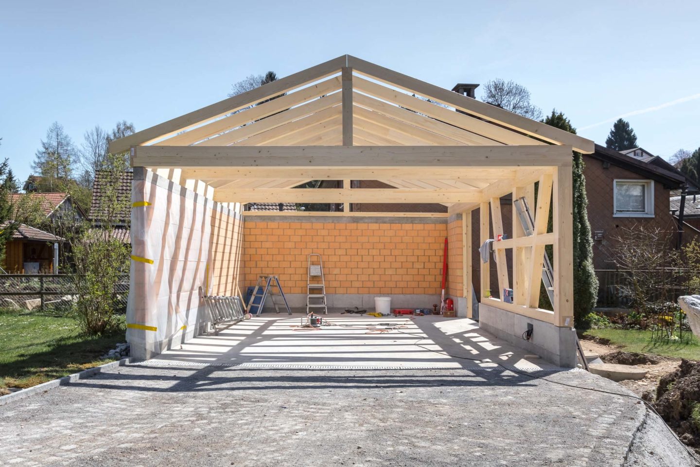 Beim vorliegenden Projekt in Ebnat-Kappel wurden die Wände des Carports als Sichtmauerwerk aus Backsteinen erstellt. Damit werden die Auflagen bezüglich Feuerschutz erfüllt.