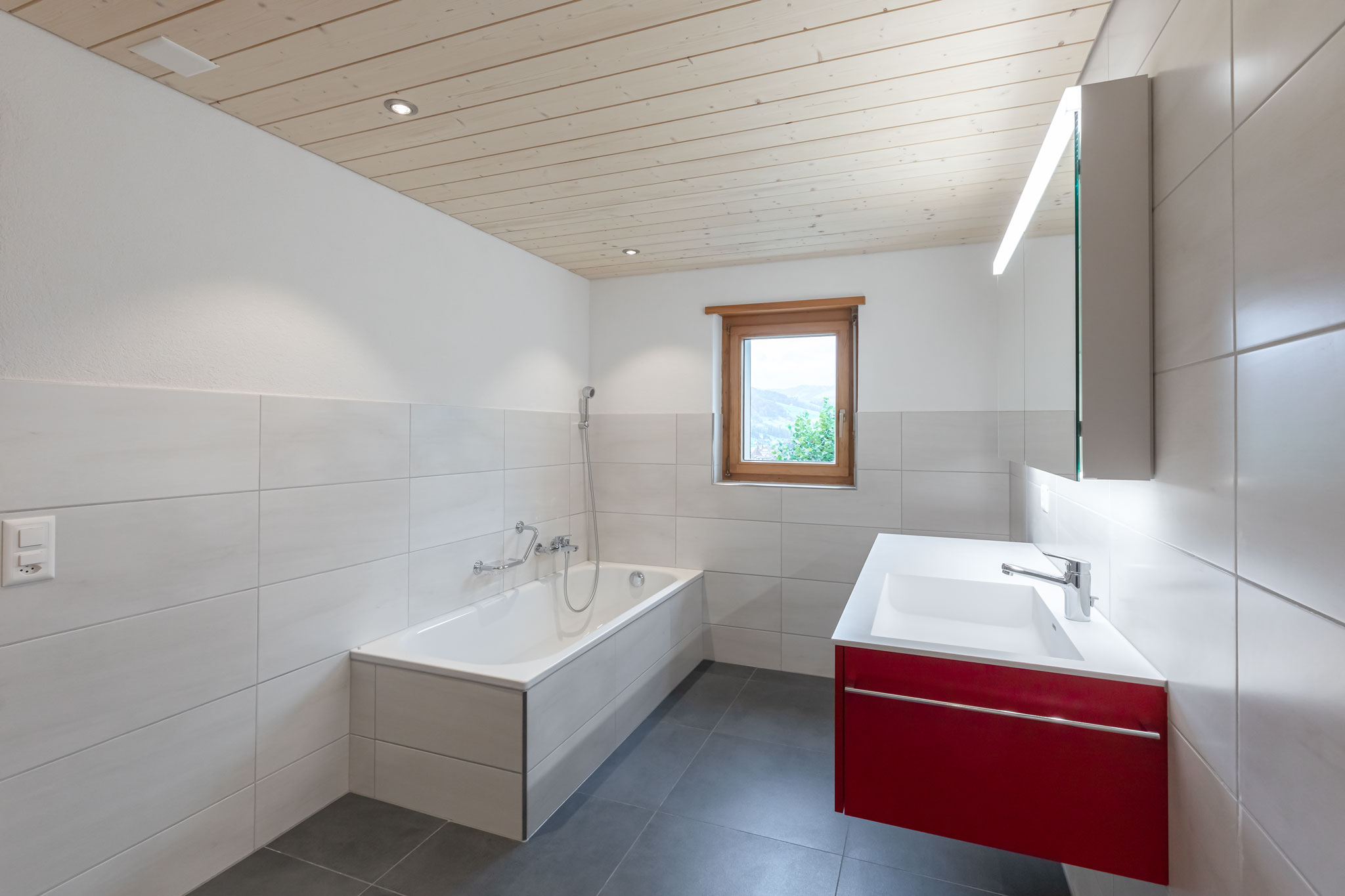 Badezimmer rot Kategorie: Badezimmer, Haustechnik Begriffe: Badezimmer, Bodengleiche Dusche Badezimmer in rot Ein bestehendes Bad bestehend aus zwei getrennten Räumen wurde komplett saniert und neu gebaut. Die roten Möbel sorgen für einen eigenen Charakter. Die bodengleiche Dusche ist nahtlos integriert und sorgt für zusätzlichen Komfort. Vorheriges Projekt Nächstes Projekt Vorheriges Projekt Nächstes Projekt